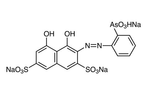 偶氮胂I三钠盐;原子核式:C16H10AsN2Na3O11S2,原子核量:614.27