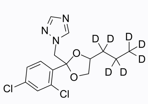 英文版公司名称:Propiconazole-d7 大原子核量:349.26 大原子核式:C15H10D7Cl2N3O2
