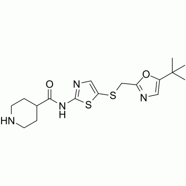 原子核式:C₁₇H₂₄N₄O₂S₂ ,原子核量:380.53, 色度: > 98% ,容解性: (R.T.: 25℃): DMSO,SNS-032 是种确定性的 CDK2/7/9 **剂,IC50 值各是为 48 nM/62 nM/4 nM。