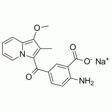 原子核式:C₁₈H₁₅N₂NaO₄, 原子核量:346.31, 色度: > 98% ,消融性: (R.T.: 25℃): DMSO,SSR128129E 是服用可以使用的 FGFR 变构调理剂, 对FGFR1 的 IC50 数值为1.9 μM。