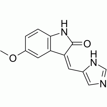 团伙结构式:C₁₃H₁₁N₃O₂ ,团伙结构量:241.25, 溶化度: > 98% ,溶化性: (R.T.: 25℃): DMSO,SU9516 是一种种CDK2 **剂,IC50 临界值 22 nM,也对 CDK1 和 CDK4 用,IC50 值分辨为 40 和 200 nM。