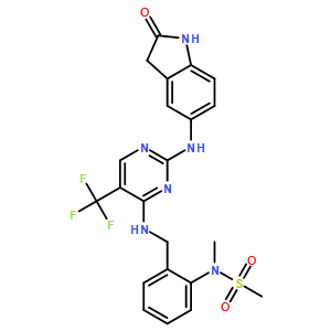 团伙式:C22H21N6O3F3S, 团伙量:506.50, 色度: > 98%, 溶化性: (R.T.: 25℃): DMSO, PF-431396 is a dual PYK2/FAK inhibitor with IC50 of 11 nM and 2 nM, respectively.