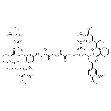 原子核式:C78H98N4O20,原子核量:1411.66,可溶性高,溶于水的度: > 98%,可溶性高,溶于水的性: (R.T.: 25℃): DMSO,Rimiducid (AP1903) 是二聚化剂,其利用化学交联 FKBP 结构特征域起意义,无法 Fas 网络信号肌肉收缩,激发凋亡。Rimiducid (AP1903) 使 Caspase 9 寻死转换开关二聚化,并速度快介导生殖细胞凋亡 (apoptosis)。