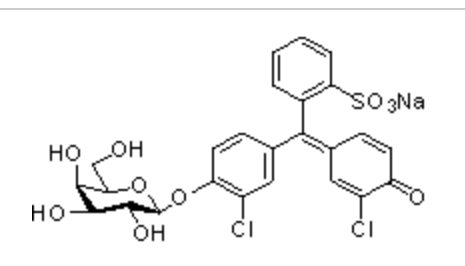 氯苯酚红-β-D-吡喃半乳糖苷钠盐,分子结构结构式:C25H21Cl2O10SNa,分子结构结构量:607.39