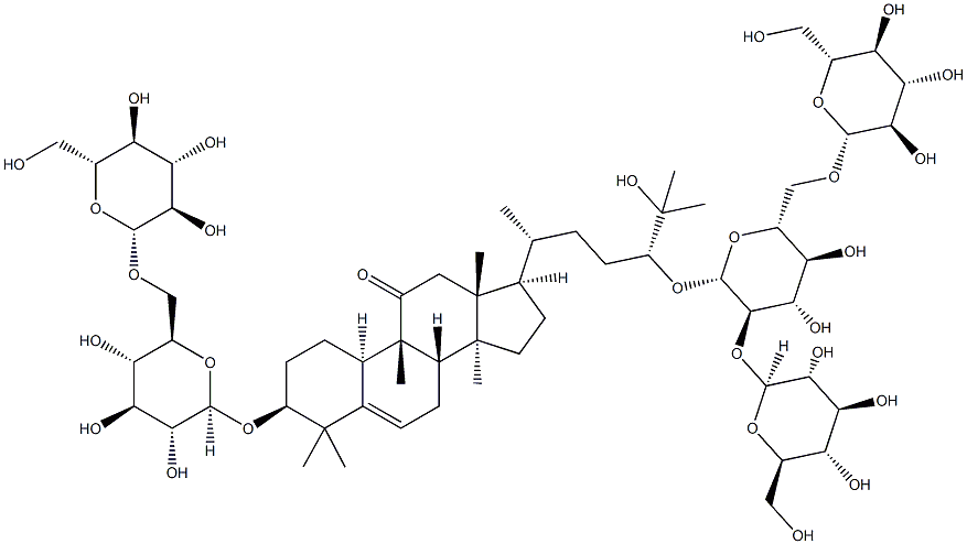 11-O-罗汉果苷V,(24R)-3β-[6-O-(β-D-Glucopyranosyl)-β-D-glucopyranosyloxy]-24-[2-O,6-O-bis(β-D-glucopyranosyl)-β-D-glucopyranosyloxy]25-hydroxycucurbita-5-ene-11-one
