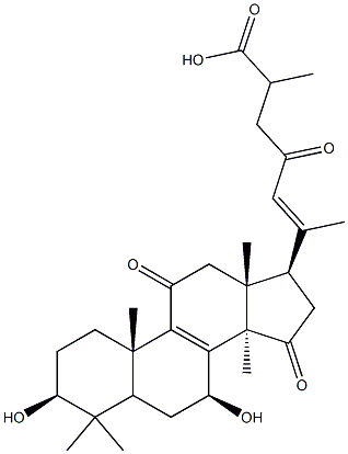- 野生灵芝烯酸C,(20E)-3β,7β,15α-Trihydroxy-11,23-dioxo-5α-lanosta-8,20(22)-dien-26-oic acid,氧化学结构式:C30H44O7 氧团伙量:516.66616