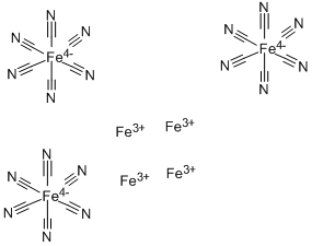 普鲁士蓝, Ferrate(4-),hexakis(cyano-kC)-,iron(3+) (3:4), (OC-6-11)-,原子式: C18Fe7N18原子量:859.239