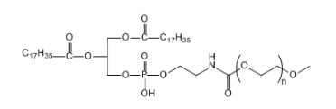 物品资料:汉语称呼:甲氧基聚乙二醇-1,2-二硬酯酰-SN-甘油-3-磷酰工业乙醇胺英文版名称大全:mPEG-DSPECAS No.:147867-65-0產品纯净度:≥95%外貌:延展性夜体或固态粉沫,在于于大分子量可溶性高,互溶水的性:互溶大部份有机化学溶液,互溶水格局式: