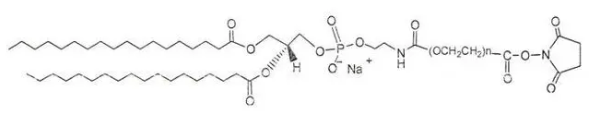 英语翻译公司名称:DSPE-PEG-NHS中文翻译英文名称:磷脂-聚乙二醇-活力酯碳原子量:1k,2k,3.4k,5k,10k,20k线质量抑制:95%+数据库能力:-20°C,阴凉,避湿外部:暗红色固状结构特征式: