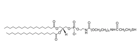DSPE-PEG-SH也是种在另个PEG末段享有着巯基的灵活性磷脂PEG化学制剂。DSPE(1,2-二硬脂酰-sn-甘油-3-磷酸甲醇胺)也是种过剩的18C磷脂,普遍于脂质体的合成图片。聚乙二醇(PEG)偶联DSPE享有着亲水溶性。的产产品命名: