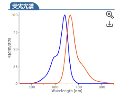 看 :深浅蓝色液态CAS号 :1267539-32-1碳原子式 :C35H45ClN6O分子结构量 :601.22ex/em :640/664 nm (PBS加载液)消光指数(ε) :250000 L⋅mol−1⋅cm−1量子产出率(Φ) :0.2溶水性 :可溶解于氯仿,甲醇,乙腈,DMF等有机酸相转移催化剂,微溶解于水存有的条件 :遮光,变干,-20oC存有输送生活条件 :室内温度