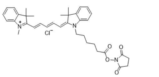 Cy5-NHS ester;Cy5-琥铂酰亚胺/滋养酯;Cyanine5-NHS ester;Cyanine5-琥铂酰亚胺/滋养酯外形 :深蓝颜色混合物CAS号 :1032678-42-4化学式式 :C36H42ClN3O4氧分子量 :616.19ex/em :640/664nm (PBS响应液)消光常数(ε) :250000 L⋅mol−1⋅cm−1量子劳动生产率(Φ) :0.2溶水性 :溶于于DMF等无机高沸点溶剂保管先决条件 :遮光,干燥的,-20oC保管运输车條件 :温度