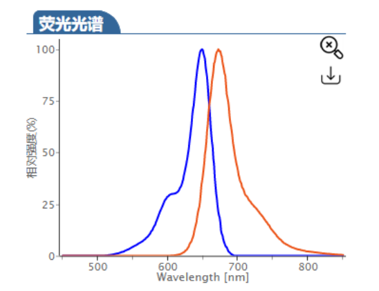美观:深蓝颜色混合物CAS号:1617497-19-4大化学式:C35H40KN3O7S2原子量:717.94激发起峰(Ex):649/672 nm (PBS缓解液)消光标准值(ε):250000 L⋅mol−1⋅cm−1量子成品率(Φ):0.2融化性:不能溶解于甲醇,DMF等有机酸溶液,极不能溶解于水存储前提条件:背光,-20oC存储运输业必备条件:常温货品形容磺化Cy5是Cy5(Cyanine 5)的水溶型。它的光谱图仪类别和Cy5类试,在荧光显微镜下达远色荧光。它荧光泽有亮度,对pH不铭感,普遍行用633 nm或647 nm的激光行业束激活再用 Cy5或APC滤片探究,故此在绝大多数要素荧光实验室设备里头行选用。磺化Cy5荧光落在远红光区,选用磺化Cy5和别远红光染剂的个重要的资源优势是在这长光谱图光谱图仪位置内样品管理时代背景荧光较低,而在这区域性CCD手机相机/加测器加测机灵度*高。磺化Cy5行把他们拿来图标球蛋白,抗原,多肽,核酸氧分子等。磺化Cy5水可溶十分好,可在水相标识反响管理体系中简单运用,不需用可挥发萃取剂助溶,很大适当标识对可挥发萃取剂强烈的海洋生物制品碳原子。另一方面是因为强水可溶加染剂碳原子原本带电体荷,磺化Cy5标识到海洋生物制品碳原子漆层后没激发疏水溶性众多,提生荧光标识副产物的稳定量分析高性。炔烃(alkyne)是长用微怪物图标符号基团。实现铜催化想法弹框怪物学想法(Copper-catalyzed azide–alkyne cycloaddition,CuAAC),炔烃可不可以和叠氮(azide)导出维持的微怪物联结(bioconjugate)。弹框怪物学想法学习效率很高,可在水相中(也还有机相)迅猛顺利完成,尽管在低氨水浓度(μM)下。弹框怪物学想法新技术未来发展很稳定,繁多相应微动物培养基商业性易有,繁多微怪物图标符号使用普遍。磺化Cy5标志后的化合物Ex/Em是649/672nm。和它享有类似的荧光特征的有机染料涉及Alexa Fluor 647,DyLight 649,ATTO 647等。
