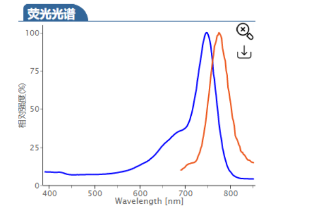 表面:翠绿色固态CAS号:n/a原子式:C54H56K2N4O11S3碳原子量:1111.43ex/em:748/774 nm (PBS降低液)消光常数(ε):199000 L⋅mol−1⋅cm−1量子成品率(Φ):0.3溶解度性:可易溶甲醇,DMF等有机酸萃取剂,极可易溶水维持先决条件:阴凉,-20oC维持运送能力:空调温度